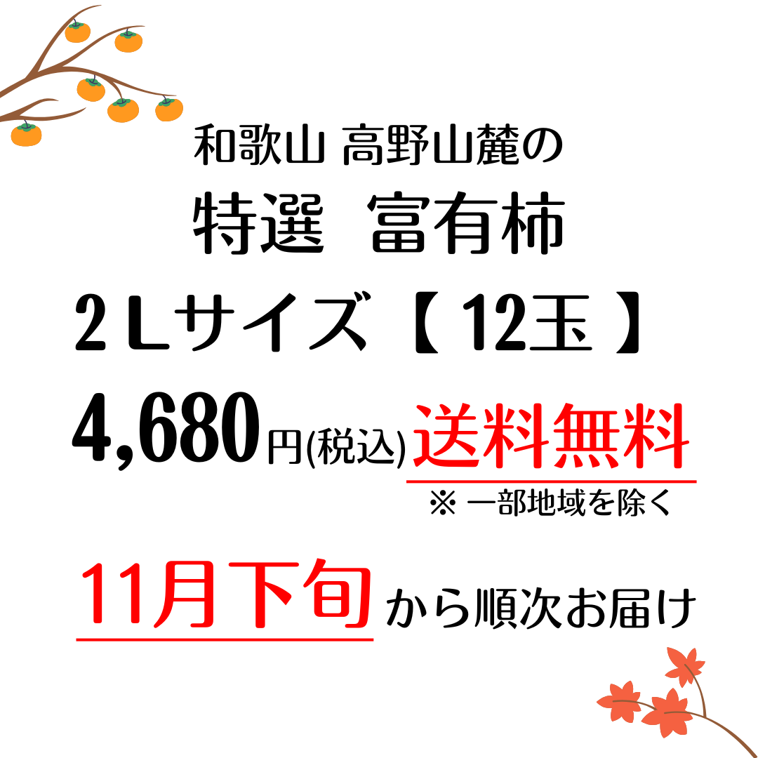 【送料無料】高野山麓の特選 富有柿 2L✕12個 甘柿の王様【和歌山名産の柿】